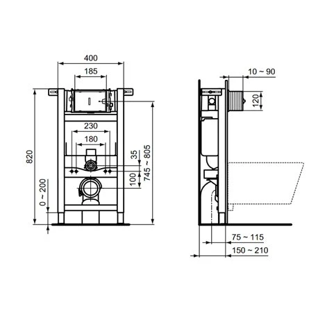 Bâti-support Prosys Porcher. Compatible avec toutes les cuvettes suspendues. Bâti-support mural, mécanique. Hauteur : 820 mm. Réservoir : 150 mm. Fourni avec un revêtement anti-condensation. Double chasse pré-réglée sur un volume 3/6L. Référence : R009067. Code EAN : 3391500579491