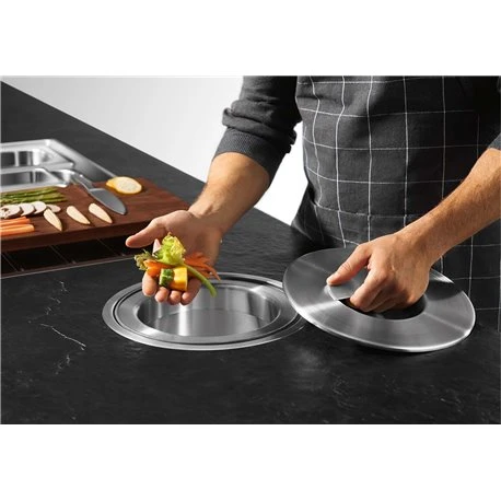 Poubelle Solon Inox Blanco. Coloris : Inox. De dimensions (Lxl) : 204 x 236 mm. Poids de 3 kg. 1 seau de 7L. Référence : 512471. Code EAN : 4020684320580