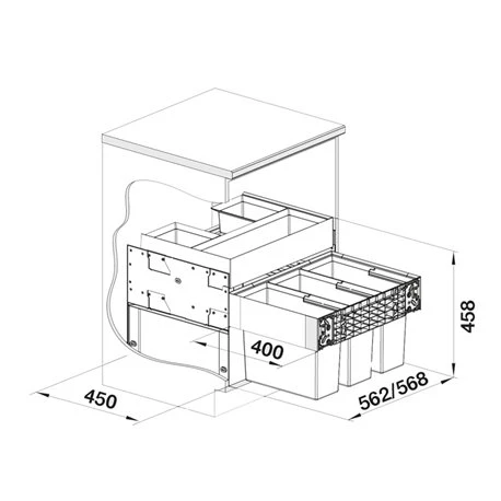 Poubelle cuisine Select II Orga 526209 3 bacs 15 +15 + 15 Litres Blanco, utilisation optimale de l’espace sous-meuble. Livré avec tiroir avec compartiements de rangement. Apporte confort et propreté sous l’évier. Grande facilité de nettoyage. Equipé de seaux à bords biseautés intégrant la poignée. Compartiments pour rangement confortables. Installation facile et rapide. Code EAN: 4020684738415