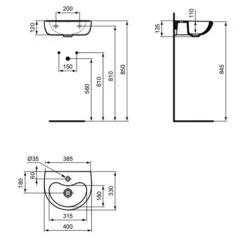 Ideal Standard Lavabo Monobloc Tipo-Z 3 Trous Blanc Brillant