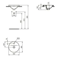 Ideal Standard Vasque Ipalyss Blanc Brillant Ø40 Cm Sans Trop Plein Et Sans Plage De Robinetterie