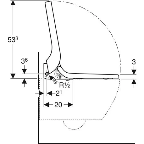 Abattant WC AquaClean Tuma Comfort Geberit. Dimensions (Lxl) : 523×360 mm. Fermeture Frein de chute. Abattant double avec charnières acier inoxydable. Coloris Blanc/Verre. Entraxe de fixation : 185 mm. Forme ronde. DĂ©tection d’utilisateur, filtre Ă odeur, lunette chauffante, tempĂ©rature de l’eau et du sĂ©choir rĂ©glable. LivrĂ© avec flexible Ă tresse mĂ©tallique 3/8 » avec coude 1/2 », cache de protection anti Ă©claboussures, patins supplĂ©mentaires, produit dĂ©tartrant 125 mL, kit de nettoyage, tĂ©lĂ©commande avec support mural et pile, matĂ©riel de fixation. RĂ©fĂ©rence : 146.270.SI.1. Code EAN : 4025416845805