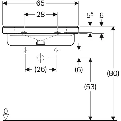 Geberit Lavabo Renova Comfort Square 65 Cm 1 Trou Percé, Sans Trop-plein