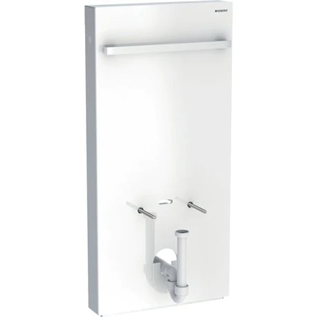 Panneau sanitaire Monolith 131.030.SI.5 verre blanc/aluminium Geberit, pour bidets suspendus et bidets au sol, 101 cm, avec porte-serviettes, habillage latĂ©ral en aluminium brossĂ©, porte-serviettes chromĂ© brillant fourni, livrĂ© avec: kit de raccordement d’eau avec 2 Ă©querres de raccordement 90°, siphon en tube coudĂ©, couvercle, cache de rĂ©hausse, matĂ©riel de fixation pour cloison sèche et pour mur maçonnĂ©. Code EAN: 4025416574309
