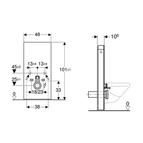 Le Panneau sanitaire Monolith Plus WC suspendu Verre blanc / aluminium 101 cm 131.221.SI.7 Geberit convient pour des WC suspendu. Il est équipé d’un rinçage double touche Soft-Touch. Il aspire les odeurs avec un filtre alvéolé céramique, paramétrable. Design, il est possède des lumières avec de couleur réglable. En verre, il est de couleur blanc avec un habillage latéral en aluminium brossé. Son alimentation se fait par le bas. Il compense les tolérances de construction. De dimensions (lxHxP) 480 mmx1010 mmx100 mm, la cuvette se fixe à une hauteur de 35 cm (+/- 1 cm). Il possède un grand volume de chasse de 4-6l. Son réservoir est isolé contre la condensation. Le pack comprend : 1 kit de raccordement d’eau ; 1 rallonge de coude de chasse 160 mm ; 1 manchette en EPDM Ø44/55 mm ; 1 manchon de raccordement PE-HD Ø90 mm ; 1 manchon de transition en PE-HD Ø90/110 mm ; 2 tiges filetées M12 ; 1 kit d’isolation phonique ; 1 prise femelle pour raccordement sur secteur ; 1 bloc d’alimentation électrique ; 1 cache de réhausse ; 1 matériel de fixation pour cloison sèche et 1 matériel de fixation. Code EAN : 4025410762955