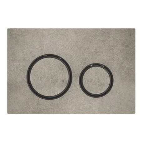 Plaque de déclenchement rinçage double touche Sigma21 Anneaux métallique chrome noir, recouvrement et touches Aspect Béton Geberit. Dimensions (hxlxp): 164x246x14 mm, en Zinc / Céramique. Référence: 115.651.JV.1. Code EAN : 4025410749413