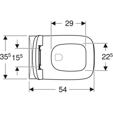 Pack WC suspendu Renova Plan, Geberit. Dimensions (Lxlxh) : 540x360x385 mm. Cuvette Carrée en Céramique avec abattant Double Frein de chute, sans bride. WC sans bride. Couleur : Blanc. Pack comprenant cuvette de WC + abattant. Référence : 500.817.00.1. Code EAN : 4025410717948