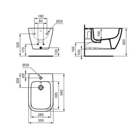 Bidet suspendu T461501 I.Life B 54×35,5 cm Blanc Ideal Standard, en grès fin, percé 1 trou central pour la robinetterie, code EAN: 8014140486015