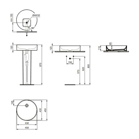 Colonne T376501 pour vasque Ideal Standard, en grès fin, code EAN: 8014140457985