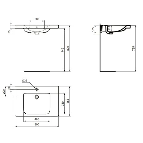 Ideal Standard Lavabo Connect Freedom 80×55,5 Cm Simple