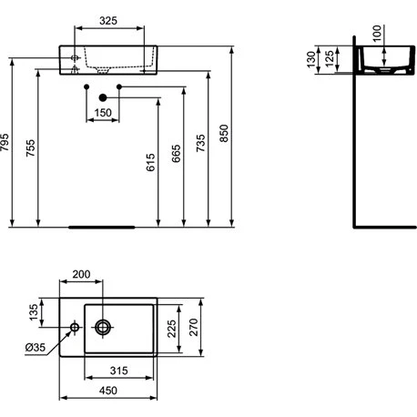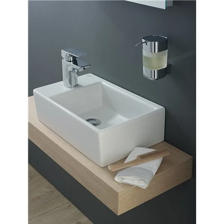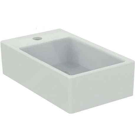 Lave-mains Strada Ideal Standard. Dimensions (Lxlxh) : 450x270x125 mm. Lave-mains en grès fin. Percé 1 trou à gauche pour la robinetterie. Sans trou de trop-plein. Référence : K081701. Code EAN : 4015413059480