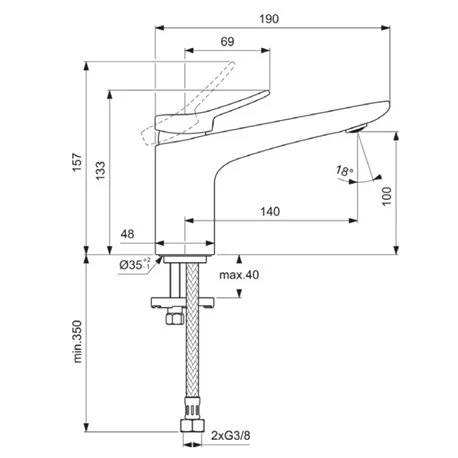 Ideal Standard Mitigeur Lavabo Conca Gris Orage Sans Tirette Ni Vidage