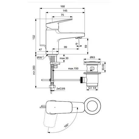 Ideal Standard Mitigeur Lavabo Piccolo Blue Start Ceraplan Avec Tirette Et Vidage 132 Mm