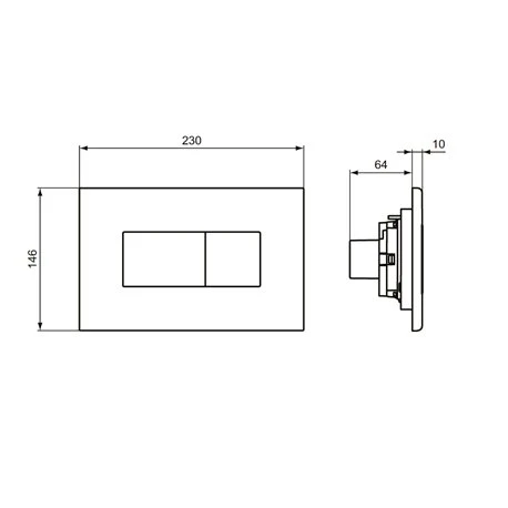 Plaque de commande R0110A6 Solea P2 Noir Ideal Standard, type : Double Flux, mécanisme : Pneumatique, dimensions (HxLxp): 146 mmx230 mmx10 mm, compatible avec les bâti-support ProSys 120, 150 et 80 Ideal Standard, code EAN: 3391500580107