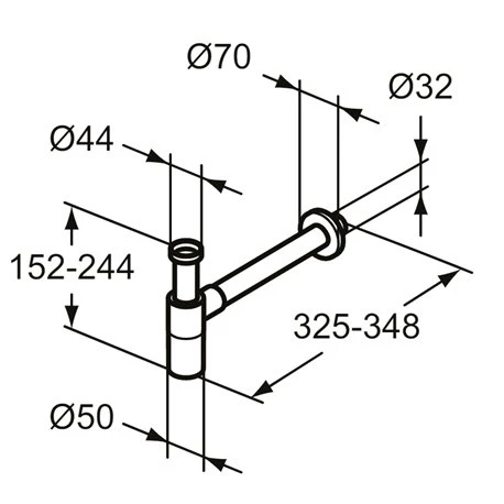 Siphon réglable pour lavabo à sortie horizontale de la marque Ideal Standard. Dimensions (lxHxP) : 70x152x348 mm. Couleur : Acier brossé. Référence : T4441GN. Code EAN : 8014140482529