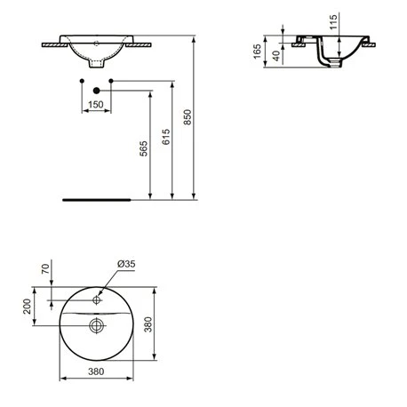 Vasque Connect E504101 Ø38 cm à encastrer par-dessus Ideal Standard, à encastrer par-dessus le plan de toilette, en porcelaine vitrifiée, percée 1 trou central pour la robinetterie, code EAN: 5017830446774