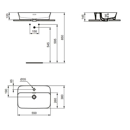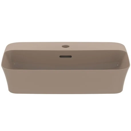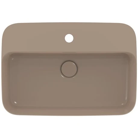 Vasque Ipalyss Ideal Standard. Dimensions (LxlxH): 550x380x120 mm. Vasque à poser en Diamatec alliant finesse et résistance extrême. Couleur : Cachemire avec finitions mattes. Vasque avec trop plein et avec plage de robinetterie. Bonde à écoulement libre non incluse, à commander. Poids : 10,2 kg. Référence : E2077V4. Code EAN : 5017830543596