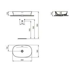 Vasque Ipalyss Ideal Standard. Dimensions (LxlxH): 600x380x120 mm. Vasque ovale à poser en Diamatec alliant finesse et résistance. Couleur : Noir Brillant avec finitions mattes. Vasque avec trop plein et sans trou de robinetterie. Bonde à écoulement libre non incluse, à commander. Poids : 9 kg. Référence : E1397V2. Code EAN : 5017830542537