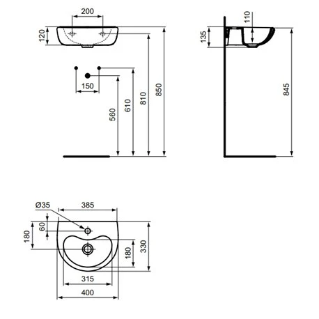 Lavabo scolaire Contour 21 de Porcher, référence S264201, 40×33 cm, sans trop-plein. En porcelaine vitrifiée. Autoportant. Forme arrondie sans bord saillant. Percé un trou pour la robinetterie. Poids 7,7 kg. Code EAN: 5017830476412