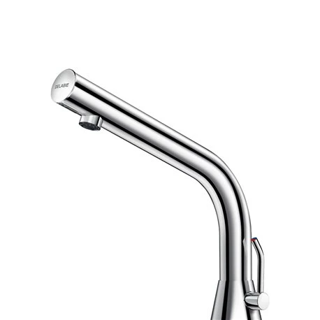 Le Mitigeur lavabo sur vasque chromé H170mm par piles 474016 Delabie possède une alimentation par piles CR123 Lithium 6 V. Il est doté d’un électrovanne antistagnation et d’un module électronique intégrés dans le corps de la robinetterie. Le débit est préréglé à 3 l/min à 3 bar et ajustable de 1,4 à 6 l/min. Il est occupé d’un aérateur antitartre et d’un rinçage périodique paramétrable (préréglé à ~60 secondes toutes les 24 h après la dernière utilisation). La robinetterie est en inox de hauteur 170mm pour une vasque semi-encastrable. Il est équipé d’un détecteur de présence infrarouge actif, optimisé en bout de bec. Il possède des flexibles PEX avec filtres, robinets d’arrêts et clapets anti-retour. Sa fixation est renforcée par 2 tiges en inox. Il possède une sécurité antiblocage en écoulement. Son bec à intérieur lisse et à faible contenance (limite les niches bactériennes). Le réglage de la température se fait sur le côté latéral avec une butée de température réglable sur le mitigeur. Il est doté de filtres et clapets anti-retour, d’une butée de température réglable, d’un système antiblocage AB : écoulement uniquement lorsque le bouton poussoir est relâché. Code EAN : 3456330205399