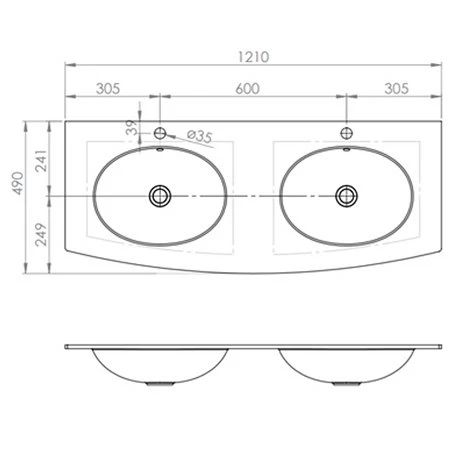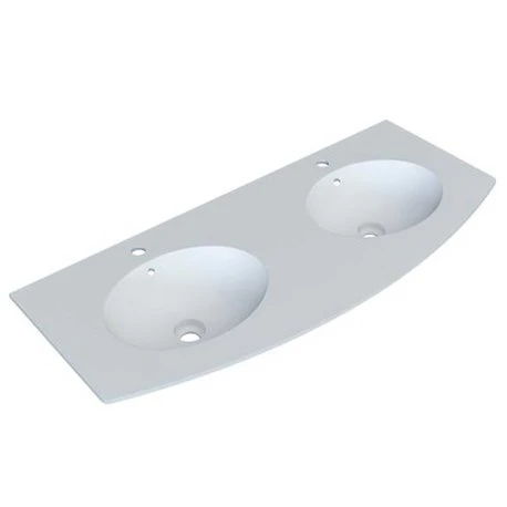 Plan vasque intégré en Solid surface, il mesure (lxhxp): 120×1,2×49 cm de Anconetti. Il possède 2 vasques. Référence : 1441652. Code EAN : 3612022020613. A intégrer sur meuble.