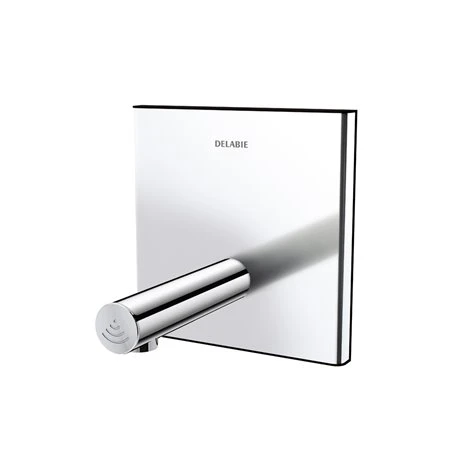 Le Robinet de lavabo encastrable avec Boîtier d’encastrement Poli brillant Par piles Bec L110 mm 370SBOX+370016 Delabie possède une alimentation par piles CR123 Lithium 6 V. La plaque de finition est en Inox de 145 x 145 mm avec de l’électronique embarquée. L’installation est modulable (rails, mur plein, panneau). Il est compatible avec les parements de 10 à 120 mm (en respectant la profondeur d’encastrement minimum de 83 mm). Il est adaptable tuyaux d’alimentation standard ou »pipe in pipe ». Il possède un raccordement de F1/2 ». Il est livré en 2 kits. Il est équipé d’un détecteur de présence infrarouge actif. Le rinçage périodique hygiénique se fait toutes les 24 h (réglable à 12 h ou OFF) après la dernière utilisation. Le débit est préréglé à 3 l/min à 3 bar, ajustable. Il possède un brise-jet antitartre. Il possède un bec à intérieur lisse et à faible contenance. Code EAN : 3456330194488