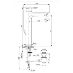 Ideal Standard Mitigeur Lavabo Monotrou Tesi Réhaussé Tirette Et Vidage Bonde Métal