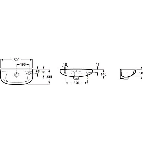 Lave-mains gain de place de la marque Roca. Les dimensions (HxlxL) sont : 145x235x500 mm. Ce lave-mains est en céramique blanc. Il dispose du trop-plein et il est percé en monotrou. Le Lave-mains pèse 6,3 Kg et il est de forme arrondie. Référence : WM815S11Z0010F1. Code EAN : 8426057059464.