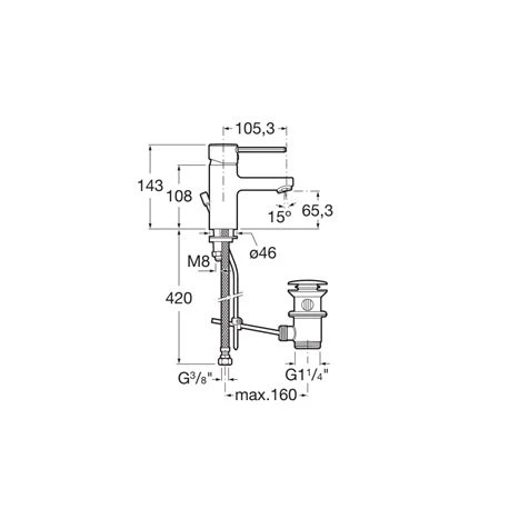 Roca Mitigeur Lavabo Targa Chromé H 143 Mm