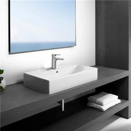 Vasque Roca Diverta 60 référence A32711G000 coloris blanc brillant, elle mesure (HxlxL): 135x430x600 mm, en Céramique, forme Rectangulaire, Avec trop-plein. A poser. Solidité et fonctionnalité se donnent la main dans cette collection. Les lignes droites, basiques et élégantes prédominent dans cet ensemble de pièces modulables, vivantes et pratiques, qui s’intègrent parfaitement dans chaque espace et lui confèrent une personnalité jeune et urbaine. Code EAN: 8414329098068