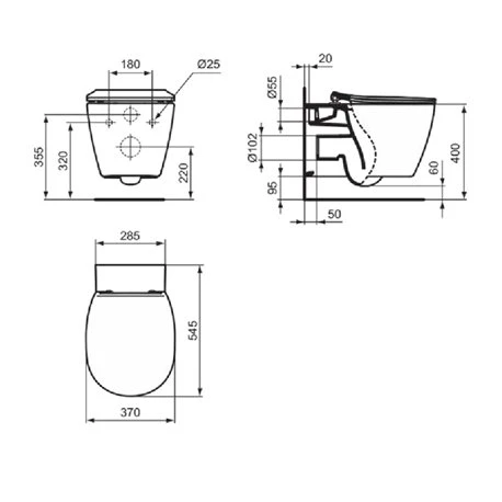 WC Suspendu Kheops 370x545x400 Mm Rond Blanc Brillant